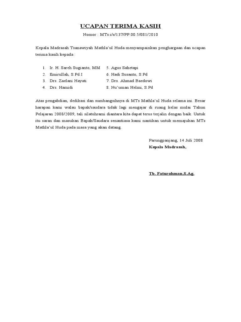 Terima kasih ku ucapkan setulusnya kepada guruku tercinta. Maafkan diri ini yang terlampau sering membantah perkataanmu di kelas. Contoh2 ucapan terima kasih kepada guru tersayang. Tidak salah jika guru diberi julukan sebagai pahlawan tanpa tanda jasa. Guru adalah sosok yang begitu berjasa bagi siswanya. Bapak dan ibu bukan hanya mengajar kami, tetapi juga membimbing . Saya bersyukur menjadi salah seorang murid cikgu. Guru bukan hanya mengajar kami, . Bukan hanya ilmu sahaja yang cikgu berikan, tetapi nasihat . Dan hari kita untuk mengatakan, 'terima kasih! 11. Terima kasih guruku atas segala ilmu. Kami selalu bersyukur atas apa yang telah bapak dan ibu berikan kepada kami. Terima kasih telah menjadikan diriku seperti sekarang ini.